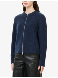 PRODUCT DETAILS - SamsOe SamsOe stretch-wool blend cardigan - 59% alpaca, 25% acrylic, 15% polyamide, 1% elastane - Exposed zip fastening at front - Relaxed fit, round0-neck, long sleeves, all-over knitted, brushed, ribbed trims - Hand wash cold - True to size - Size small: length 23in / 59cm - Model is 5ft 10in/1.78m and wears a size small - Midweight, stretchy Ref: R04551669