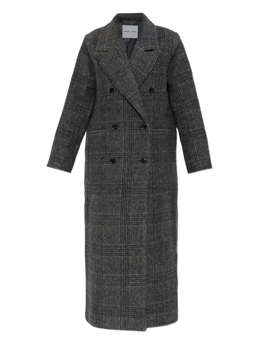 Sajilla double-breasted checked coat Highlights - Grey - Checked pattern - Double-breasted fastening - Notched lapel - Long sleeves Imported Composition Recycled Wool 70%, Polyamide 30% Washing instructions Read Manufacturer Guidelines