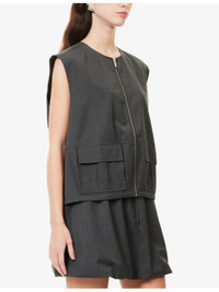PRODUCT DETAILS - SamsOe & SamsOe wool-blend vest - 55% polyester, 45% wool; lining 52% polyester, 48% viscose - Exposed zip fastening at front - Oversized fit, round neck, sleeveless, two front flap pockets, silver-toned hardware, drawcord hem, fully lined - Hand wash - True to size - Size small: length 23in / 58.5cm - Model is 5ft 10in/1.78m and wears a size small - Lightweight, non-stretch Ref: R04551675