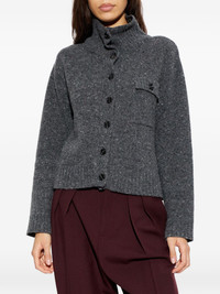 Salois button-fastening cardigan Highlights - Dark grey - Button fastening - Chest pocket - High neck - Ribbed knit - Long sleeves Imported Composition Recycled Wool 45%, Wool 35%, Recycled Polyamide 20% Washing instructions Hand Wash