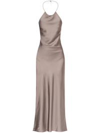 Sanja dress Highlights - Taupe grey - Ecovero™ blend - Satin weave - Bias cut - Round neck - Rear tie fastening - Spaghetti straps - Rear criss-cross straps - Ankle-length - Straight hem Imported Composition Viscose 100%