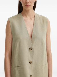 sleeveless V-neck gilet Highlights - Light beige - V-neck - Button fastening - Sleeveless - Welt pocket Imported Composition Fabric 100%