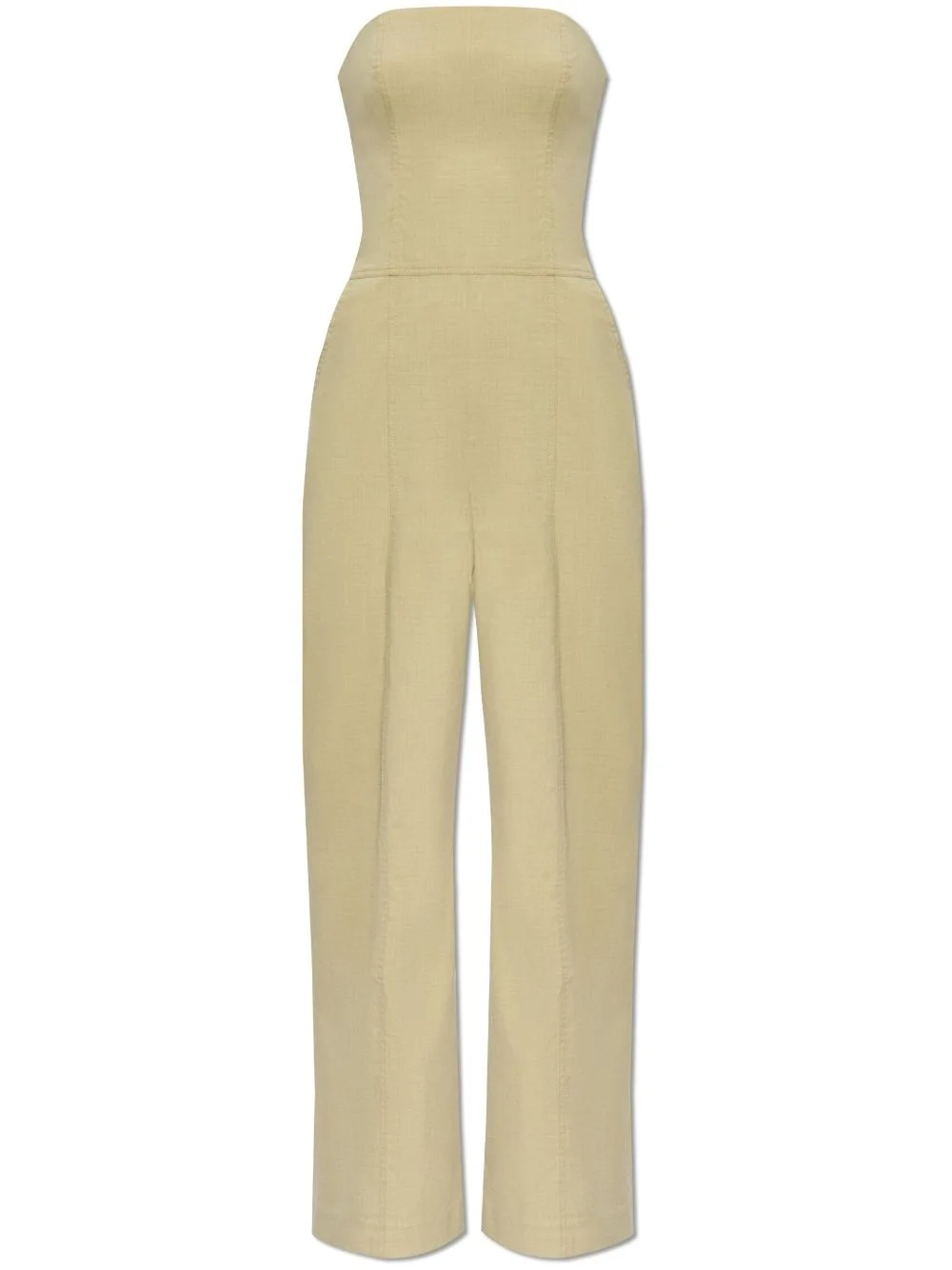 strapless tailored jumpsuit Highlights - Beige - Recycled polyester blend - Strapless - Tailored cut - Pleat detailing - Shirred panel - Straight leg Imported Composition Outer: Recycled Polyester 62%, Viscose 29%, Polyester 6%, Elastane 3% Lining: Polyester 52%, Viscose 48%