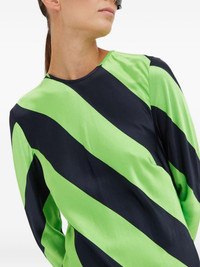 striped long-sleeves maxi dress Highlights - Green - Striped pattern - Long sleeves - Round neck - Rear slit Imported Composition EcoVero Viscose (LENZING) 53%, Viscose 47% Washing instructions Read Manufacturer Guidelines