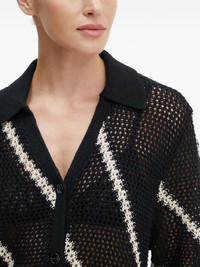 striped-pattern short-sleeve cardigan Highlights - Black - Striped design - Button fastening - Short sleeves - Open knit Imported Composition Cotton 100% Washing instructions Read Manufacturer Guidelines