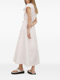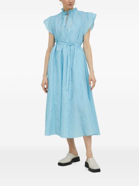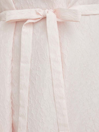 tie-neck belted midi dress Highlights - Light pink - Textured finish - Tie fastening - Short sleeves - Belted waist - Ruffled neck Imported Composition Fabric 100% Washing instructions Read Manufacturer Guidelines