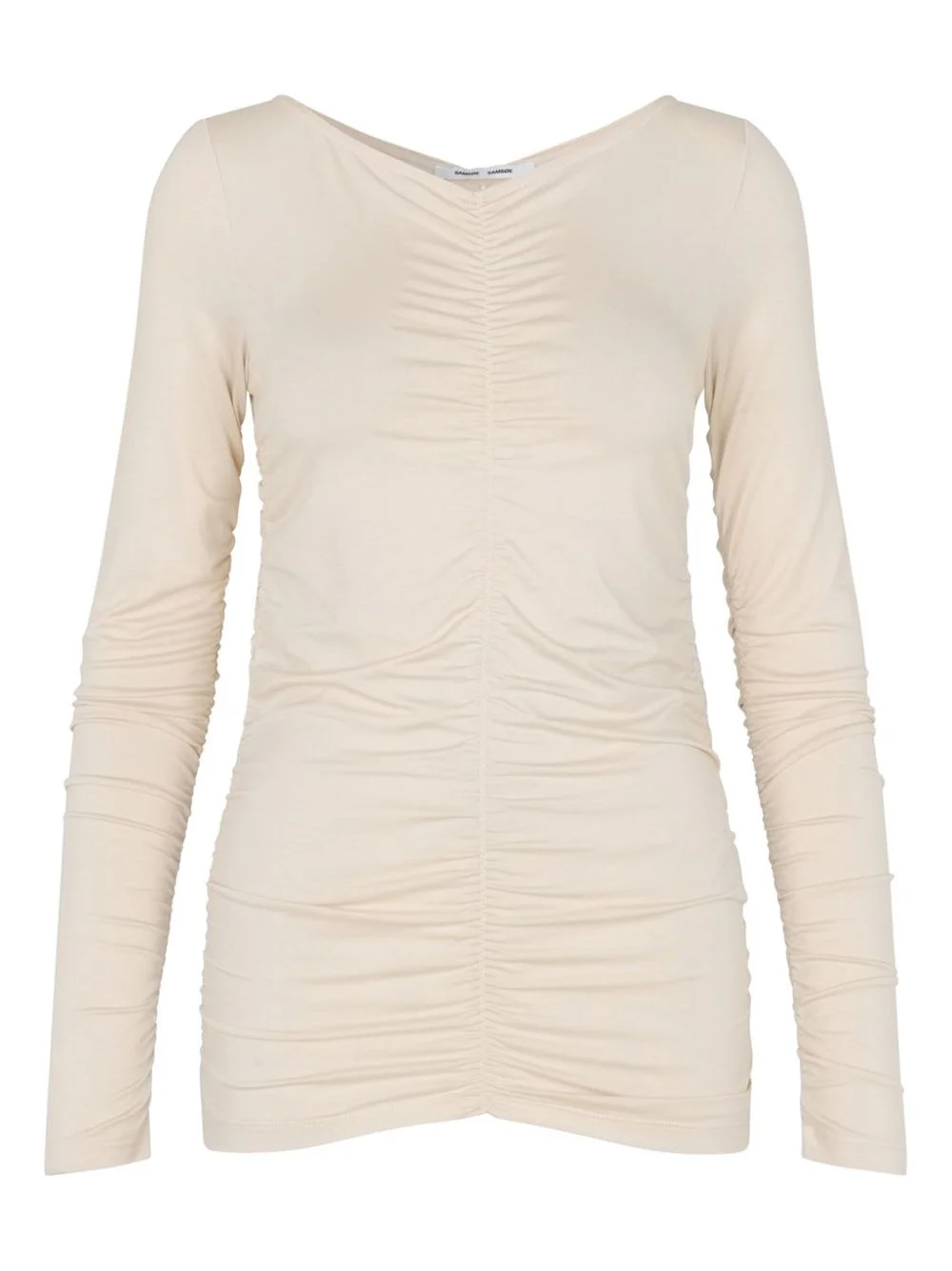 Ulrika gathered-detail T-shirt Highlights - Light beige - Long sleeves - Gathered detail at back - Jersey Imported Composition Lyocell 94%, Elastane 6% Washing instructions Read Manufacturer Guidelines