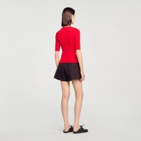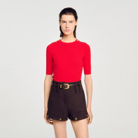 Rib knit sweater with round neck, short sleeves and embellished with a button placket on the shoulder. - Sandro Women's cable knit sweater - Round neck - Short sleeves - Shoulder button placket with decorative buttons - Designed for a slim fit Reference: SFPPU02667_30 COMPOSITION & CARE Composition - Main fabric: 68% viscose, 30% acrylic, 2% elastane - Bottom: 67% viscose, 29% acrylic, 2% elastane, 2% polyamide - Cuff: 69% viscose, 28% acrylic, 2% elastane, 1% polyamide - Collar: 69% viscose, 29% acrylic, 2% elastane Care advice - Hand wash - Do not bleach - Do not tumble dry - Iron at a maximum temperature of 110°C without steam - F - Professional dry clean, with hydrocarbon solvent, normal treatment