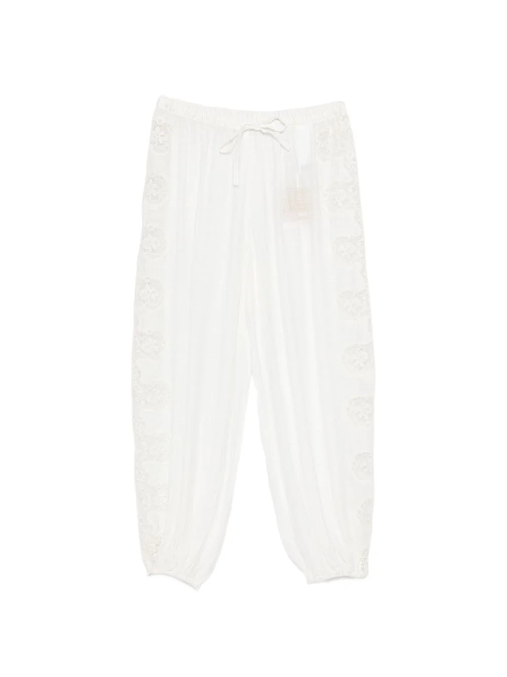 Aya lace-detail trousers Highlights - White - Lace detail - Elasticated waistband Imported Composition Polyester 100%, Viscose 73%, Polyamide 19%, Linen/Flax 8% Washing instructions Dry Clean Only