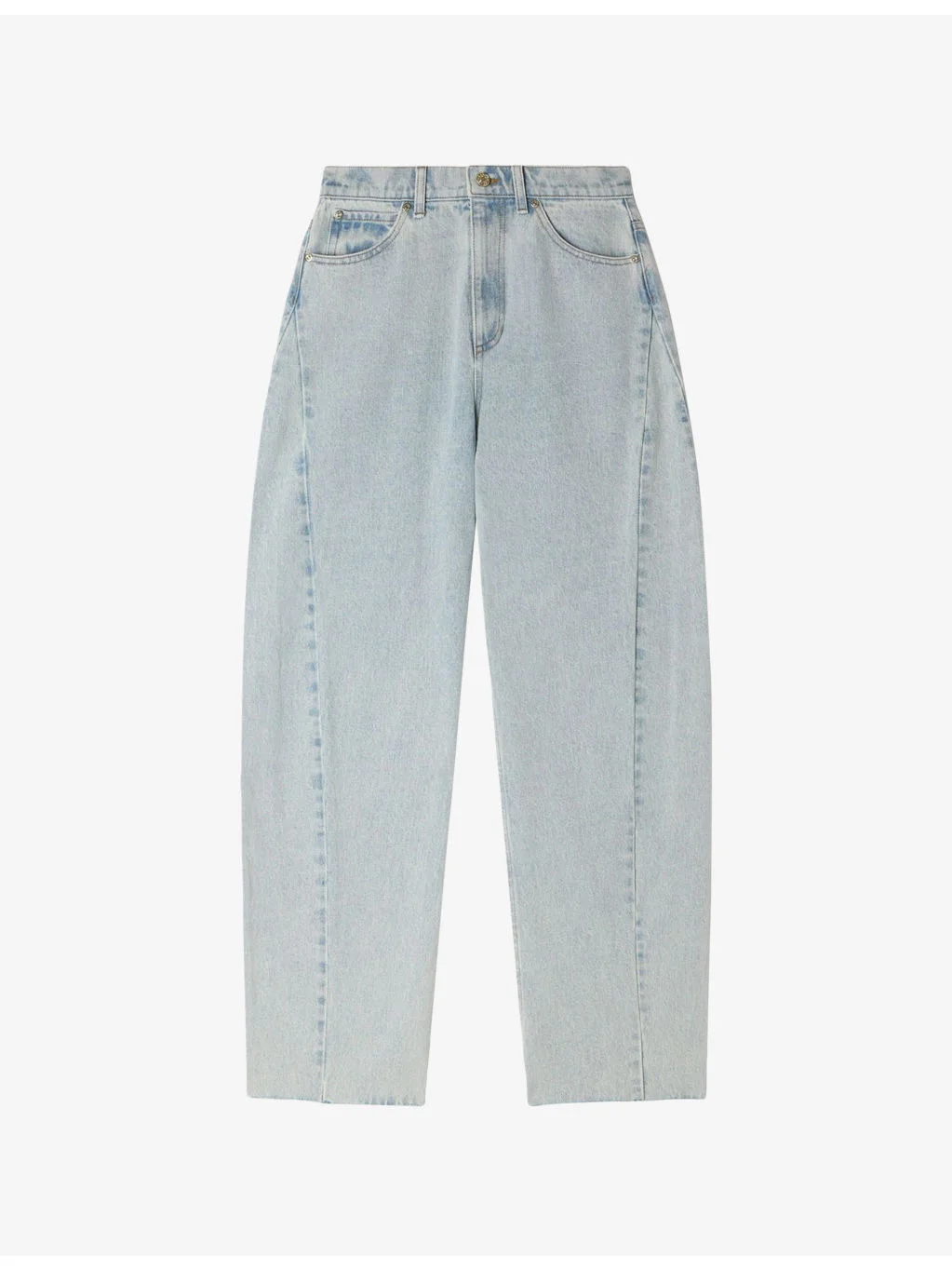 PRODUCT DETAILS - Sandro denim jeans - 100% cotton - Button and zip-fly fastening - Regular fit, high rise, belt loops, five pockets, barrel wide leg - Machine wash at 30°C - True to size - Model is 5ft 11in/1.80m and wears a size UK 8 - Midweight, non-stretch Ref: R04597504