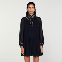 This item's main material is at least 50% recycled. Recycling reduces the environmental impact by limiting the use of virgin materials. The model is 179 cm / 5'11 tall and wears a size 36 FR / 8 UK COMPOSITION Main fabric: 100% polyester Braid: 80% polyester, 20% elastane Buttons: 100% nacre Slip: 100% polyester Reference: SFPRO03159_20