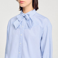 Cropped small-check shirt with long sleeves, shirt collar with bow and button fastening. - Sandro Women's small-check cropped shirt - Shirt collar with bow - Buttoned cuffs with pleats - Button fastening - Designed for a cropped fit Reference: SFPCM01484_D221 COMPOSITION & CARE Composition - Main material: 100% cotton - Buttons: 100% nacre Care advice - Regular cycle 30° - Do not bleach - Do not tumble dry - Iron at a maximum temperature of 110°C without steam - F/ - Professional dry clean, with hydrocarbon solvent, gentle treatment