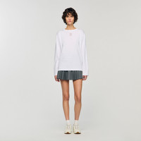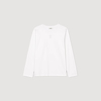 Round-neck, long-sleeved T-shirt with 4S English embroidery on the front. - Sandro Women's cotton T-shirt - Round neck - Long sleeves - 4S English embroidery - True to size Reference: SFPTS01708_10 COMPOSITION & CARE Composition - Main material: 100% cotton - Rib: 100% cotton Care advice - Gentle cycle 30° - Do not bleach - Do not tumble dry - Iron at a maximum temperature of 110°C without steam - Do not dry clean