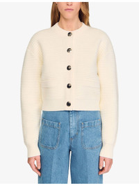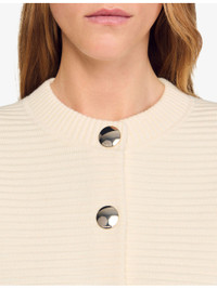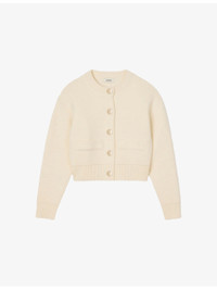 PRODUCT DETAILS - Sandro knitted cardigan - 38% acrylic, 37% wool, 18% viscose, 7% polyester - Exposed button fastening at front - Regular fit, round neck, long sleeves, button-down design, two pockets at the side, textured finish - Hand wash - True to size - Model is 5ft 9in/1.75m and wears a size UK 8 - Midweight, slight-stretch Ref: R04490632
