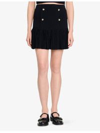 Button-Embellished Pleated Stretch-Woven Mini Skirt