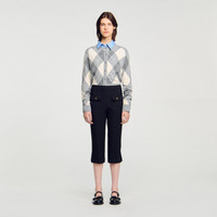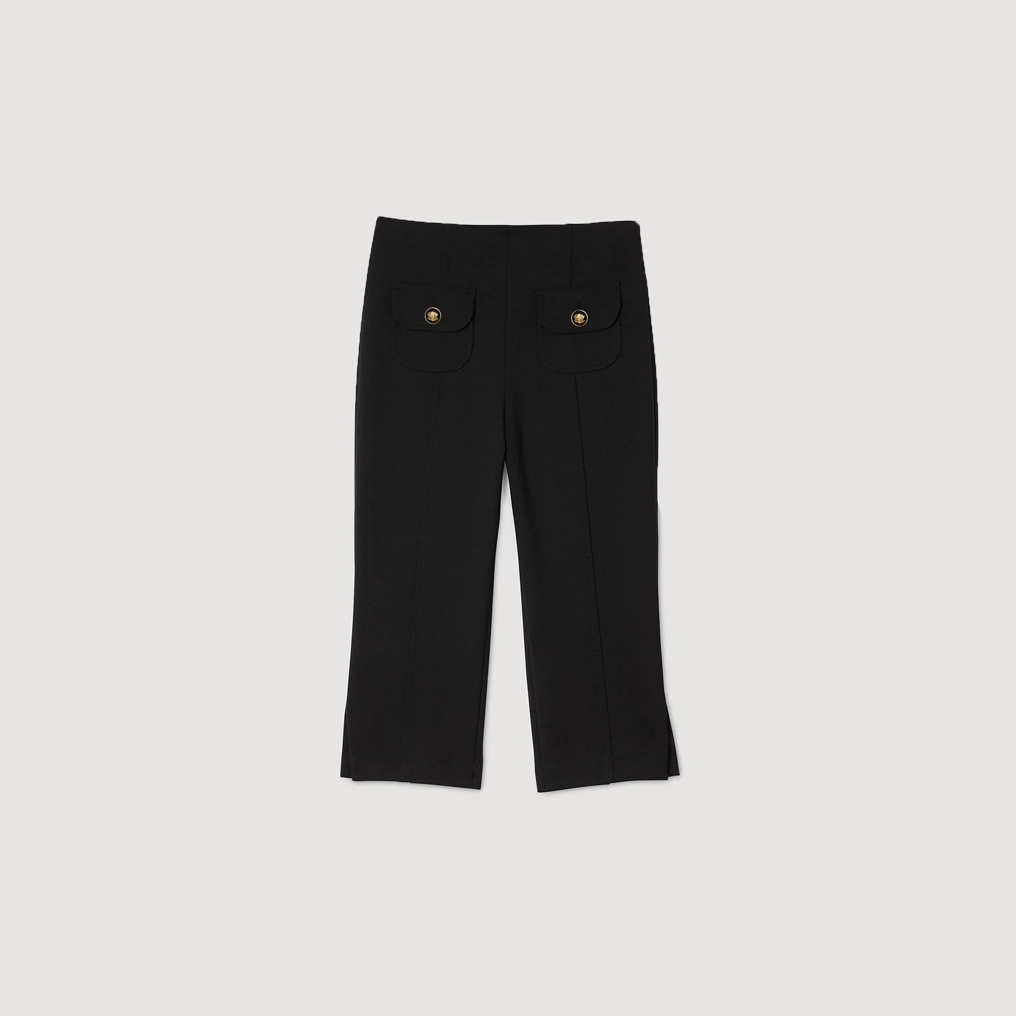 Stretch capri trousers with side slits at the hem, featuring buttoned flap patch pockets and a side zip fastening. - Sandro Women's capri trousers - Side slit at hem - Buttoned flap patch pockets - Side zip fastening - Designed for a slim fit Reference: SFPPA01746_20 COMPOSITION & CARE Composition - Main material: 91% polyester, 9% elastane Care advice - Do not wash - Do not bleach - Do not tumble dry - Iron at a maximum temperature of 110°C without steam - F/ - Professional dry clean, with hydrocarbon solvent, gentle treatment