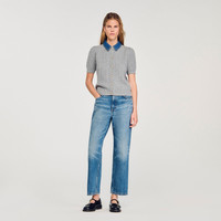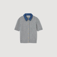 Short-sleeved cable knit cardigan with a removable denim shirt collar and button fastening. - Sandro Women's wool and cashmere cardigan - Cable knit - Straight cut - Short sleeves - Removable cotton collar - Button fastening - Fine plain knit - True to size Reference: SFPCA01257_24 COMPOSITION & CARE Composition - Main fabric: 94% wool, 6% cashmere - Collar: 100% cotton - Rib: 95% wool, 5% cashmere Care advice - Hand wash - Do not bleach - Do not tumble dry - Iron at a maximum temperature of 110°C without steam - F - Professional dry clean, with hydrocarbon solvent, normal treatment