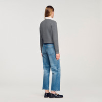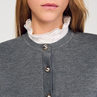 Fine knit cardigan with long sleeves with turned-up cuffs, a detachable contrasting ruffled collar, and piped pockets. - Sandro Women's fine knit cardigan - Straight cut - Detachable ruffled collar - Button fastening - Long sleeves - Ribbed trim - True to size Reference: SFPCA01272_24 COMPOSITION & CARE Composition - Leather: lambskin leather - Lining: 55% polyester, 45% viscose Care advice - Hand wash - Do not bleach - Do not tumble dry - Iron at a maximum temperature of 110°C without steam - F - Professional dry clean, with hydrocarbon solvent, normal treatment