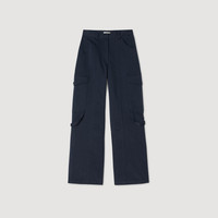 Wide-leg cargo trousers with large flap pockets and side straps. - Sandro Women's cargo trousers - Large pockets - Side straps - Exposed topstitching - Belt loops - Designed for a boxy fit Reference: SFPPA01544_44 COMPOSITION & CARE Composition - Main material: 100% cotton - Pocket lining: 80% polyester, 20% cotton Care advice - Hand wash - Do not bleach - Do not tumble dry - Iron at a maximum temperature of 110°C without steam - Do not dry clean