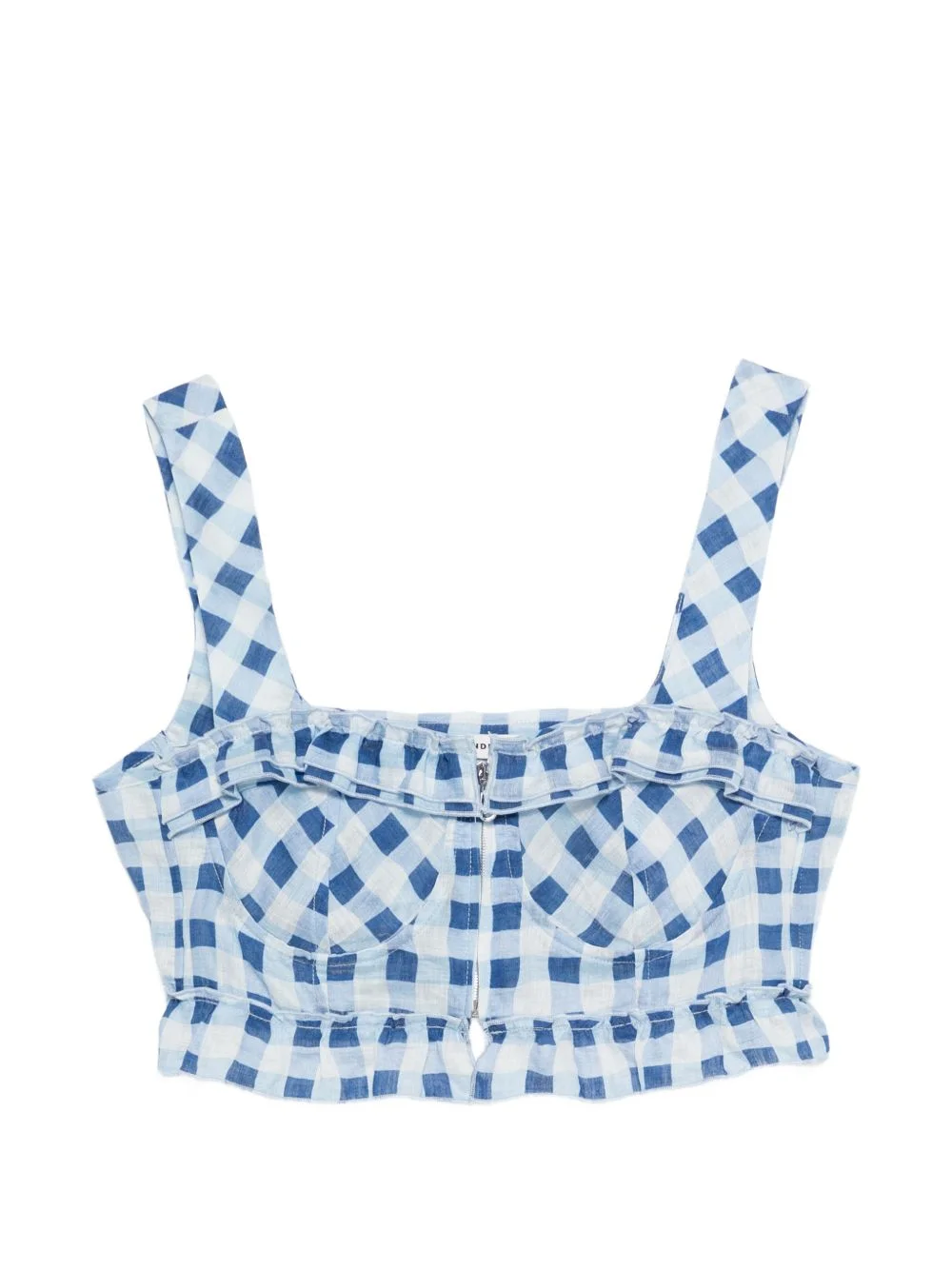 check-pattern top Highlights - Blue - Check pattern - Zip fastening - Cropped length Imported Composition Linen/Flax 86%, Polyester 14% Washing instructions Machine Wash