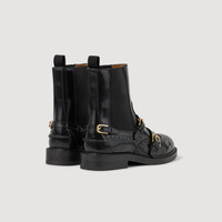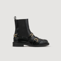 Shiny leather Chelsea boots adorned with buckles. - Sandro Women's leather Chelsea boots - Buckles - Round toe Reference: SFACH01309_20 COMPOSITION & CARE Composition - Main material: cow leather - Lining: calfskin leather - Outer sole: 100% synthetic rubber - Insole: calfskin leather Care advice - Do not wash - Do not bleach - Do not tumble dry - Do not iron - Do not dry clean