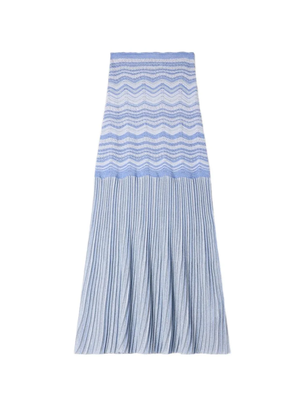 chevron pleated knitted skirt Highlights - Blue - Chevron pattern - Pleated Imported Composition Viscose 70%, Polyester 30% Washing instructions Read Manufacturer Guidelines