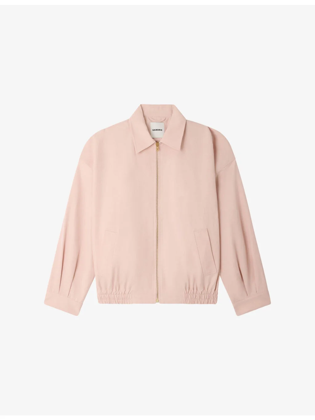 PRODUCT DETAILS - Sandro cotton and linen-blend jacket - 67% cotton 33% linen - Exposed zip fastening at front - Relaxed fit, collared, long sleeves, two pockets at the side, elasticated hem - Dry clean - True to size - Model is 5ft 9in/1.75m and wears a size UK 8 - Lightweight, non-stretch Ref: R04609139