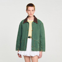 Quilted workwear jacket in faded cotton, featuring contrast stitching, leather shirt collar, long sleeves with buttoned cuffs, button fastening with decorative buttons and patch pockets. - Sandro Women's quilted cotton workwear jacket - Leather shirt collar - Button fastening - Long sleeves with buttoned cuffs - Buttoned patch pockets - Worn-effect finish on the hem - True to size Reference: SFPBL01230_8011 COMPOSITION & CARE Composition - Main material: 100% cotton - Lining: 100% cotton - Collar: lambskin leather - Padding: 100% polyester Care advice - Do not wash - Do not bleach - Do not tumble dry - Do not iron - F/ - Professional dry clean, with hydrocarbon solvent, gentle treatment