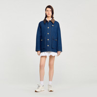 Denim workwear jacket with contrasting corduroy collar, long sleeves, zip fastening with covered button placket and pockets. - Sandro Women's workwear jacket - Corduroy shirt collar - Zip fastening with covered button placket - Side slits with inner press studs - Patch pockets with flaps and press studs - Contrasting checked interior - Designed for a boxy fit Reference: SFPOU00710_4785 Care advice - Do not wash - Do not bleach - Do not tumble dry - Iron at a maximum temperature of 110°C without steam - F/ - Professional dry clean, with hydrocarbon solvent, gentle treatment