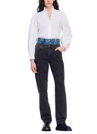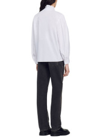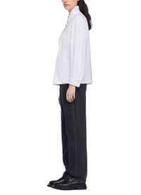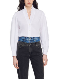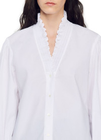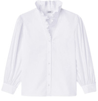 DESCRIPTION - front buttoned closure - button fastening - logo at the back label - long-sleeved - high-neck - ruff - buttoned cuffs - cuffed sleeves DETAILS AND CARE MATERIAL: Main fabric : 100% Cotton / Button : 100% Mother of pearl COLOR: wei_ COUNTRY OF MANUFACTURE: Tunisia PRODUCT CODE: SDOCE29NWHT7E11A00 The model is 5'5 tall and wears a size 1.