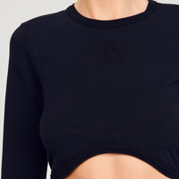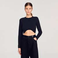 Cropped cotton T-shirt with round neck, long sleeves and tone-on-tone embroidery. - Sandro Women's cropped T-shirt - Round neck - Long sleeves - Tone-on-tone embroidery - Ribbed edges - Shorter in front - Designed for a cropped fit Reference: SFPTS01733_20 COMPOSITION & CARE Composition - Main material: 95% cotton, 5% elastane - Rib: 100% cotton Care advice - Gentle cycle 30° - Do not bleach - Do not tumble dry - Iron at a maximum temperature of 110°C without steam - Do not dry clean