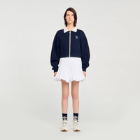 Reference: SFPSW00650_D234 COMPOSITION & CARE Composition - Main material: 66% cotton, 34% polyester - Collar: 95% viscose, 5% elastane - Secondary material: 100% cotton Care advice - Gentle cycle 30° - Do not bleach - Do not tumble dry - Iron at a maximum temperature of 110°C without steam - Do not dry clean