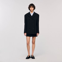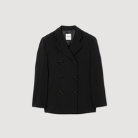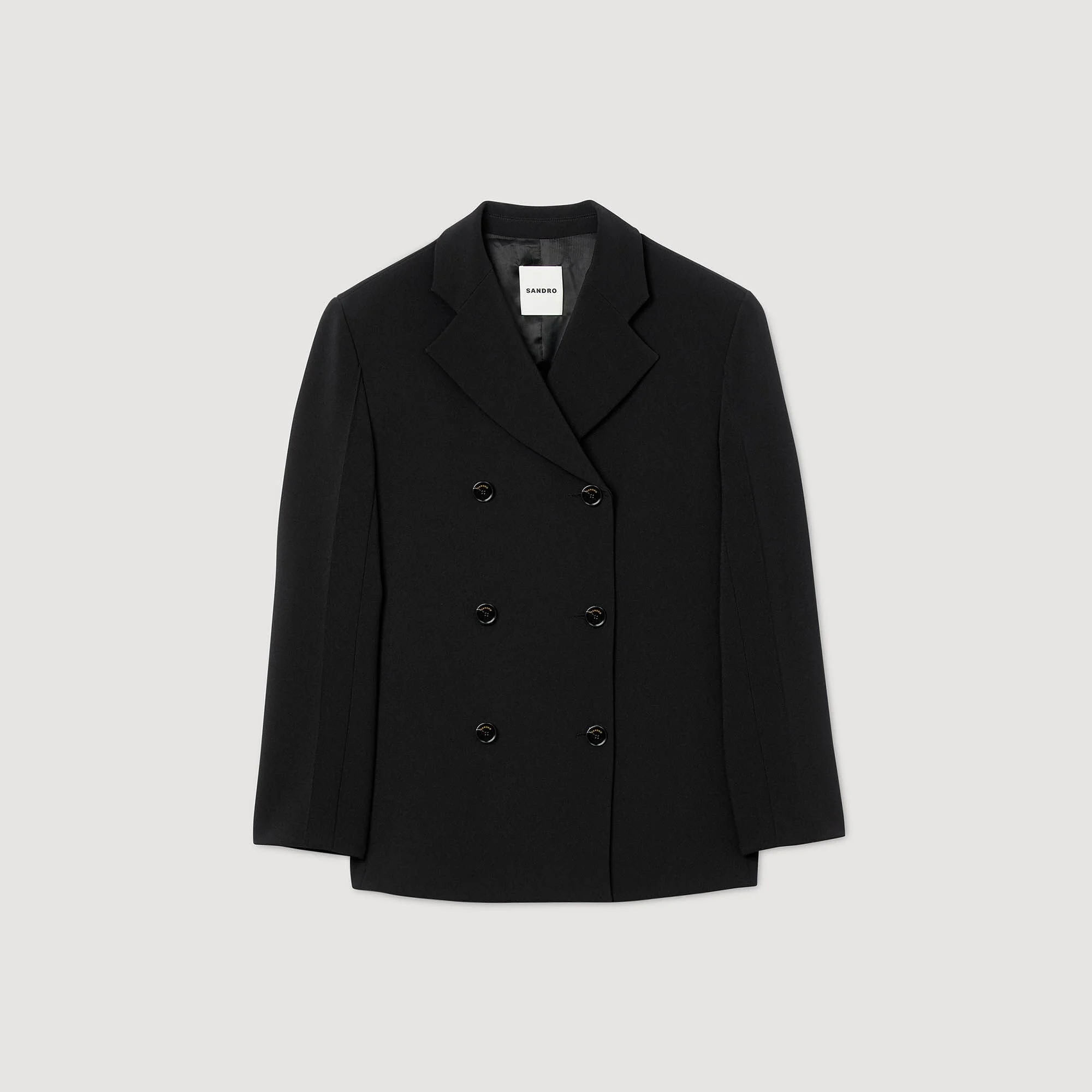 Double-breasted suit jacket with a tailored collar, long sleeves and double welt pockets. - Sandro Women's suit jacket - Double-breasted - Tailored collar - Buttoned sleeve vents - Designed for a boxy fit Reference: SFPVE01220_20 COMPOSITION & CARE Composition - Main material: 93% polyester, 7% elastane - Lining: 100% viscose - Under collar: 100% polyester - Pocket lining: 100% cotton Care advice - Do not wash - Do not bleach - Do not tumble dry - Iron at a maximum temperature of 110°C without steam - F/ - Professional dry clean, with hydrocarbon solvent, gentle treatment
