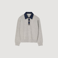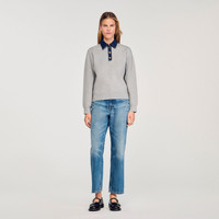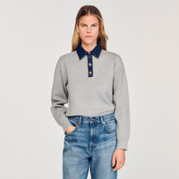 Knit sweater with denim button-down polo collar neck and long sleeves with gathered cuffs. - Sandro Women's knit sweater - Denim button-down polo shirt collar - Long sleeves - Ribbed cuffs - Designed for a boxy fit Reference: SFPPU02420_24 COMPOSITION & CARE Composition - Main fabric: 60% viscose, 24% polyester, 16% polyamide - Secondary fabric: 100% cotton - Embroidery: 100% polyester - Rib: 64% viscose, 26% polyester, 10% polyamide Care advice - Hand wash - Do not bleach - Do not tumble dry - Iron at a maximum temperature of 110°C without steam - F - Professional dry clean, with hydrocarbon solvent, normal treatment