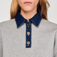 SWEATER WITH DENIM COLLAR