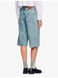 PRODUCT DETAILS - Sandro denim shorts - 100% cotton - Button and zip-fly fastening - Regular fit, mid-rise, belt loops, five pockets, distressed finish - Machine wash at 30°C - True to size - Model is 5ft 9in/1.75m and wears a size UK 8 - Midweight, non-stretch Ref: R04501160