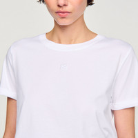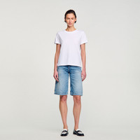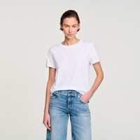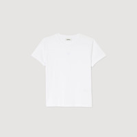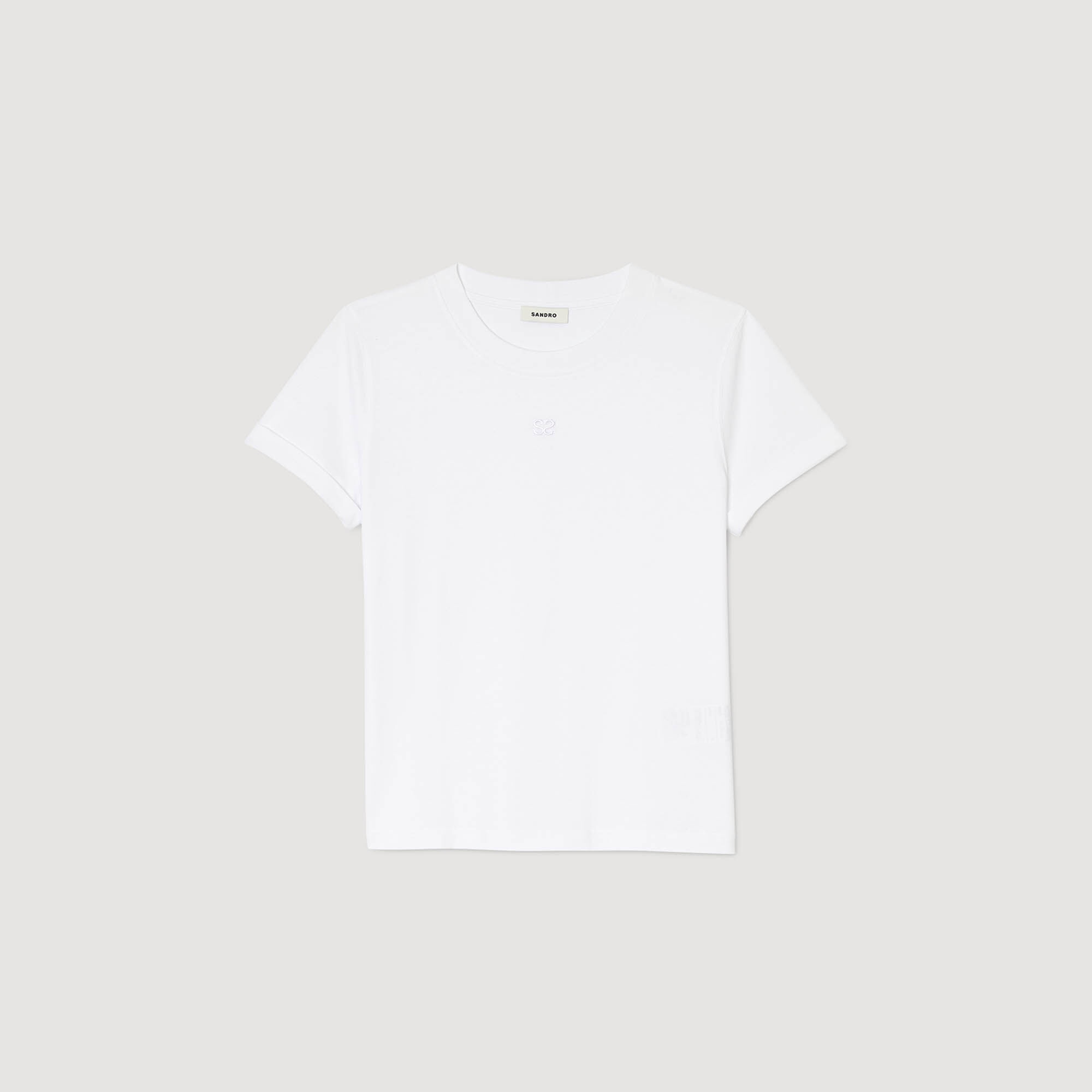 Round-neck short-sleeved T-shirt , +P34embellished with tone-on-tone double S embroidery. Sandro Women's T-shirt Round neck Short turn-up sleeves Tone-on-tone double S embroidery The model is 5'10" tall and wears a size 1 FR / 4 US The cotton in this item was produced organically via a cultivation method that preserves biodiversity and bans the use of pesticides and GMOs. The model is 181 cm / 5'11 tall and wears a size 1 FR / 4 US COMPOSITION Main fabric: 100% cotton Embroidery: 100% polyester Rib: 100% cotton Reference: SFPTS01292_10
