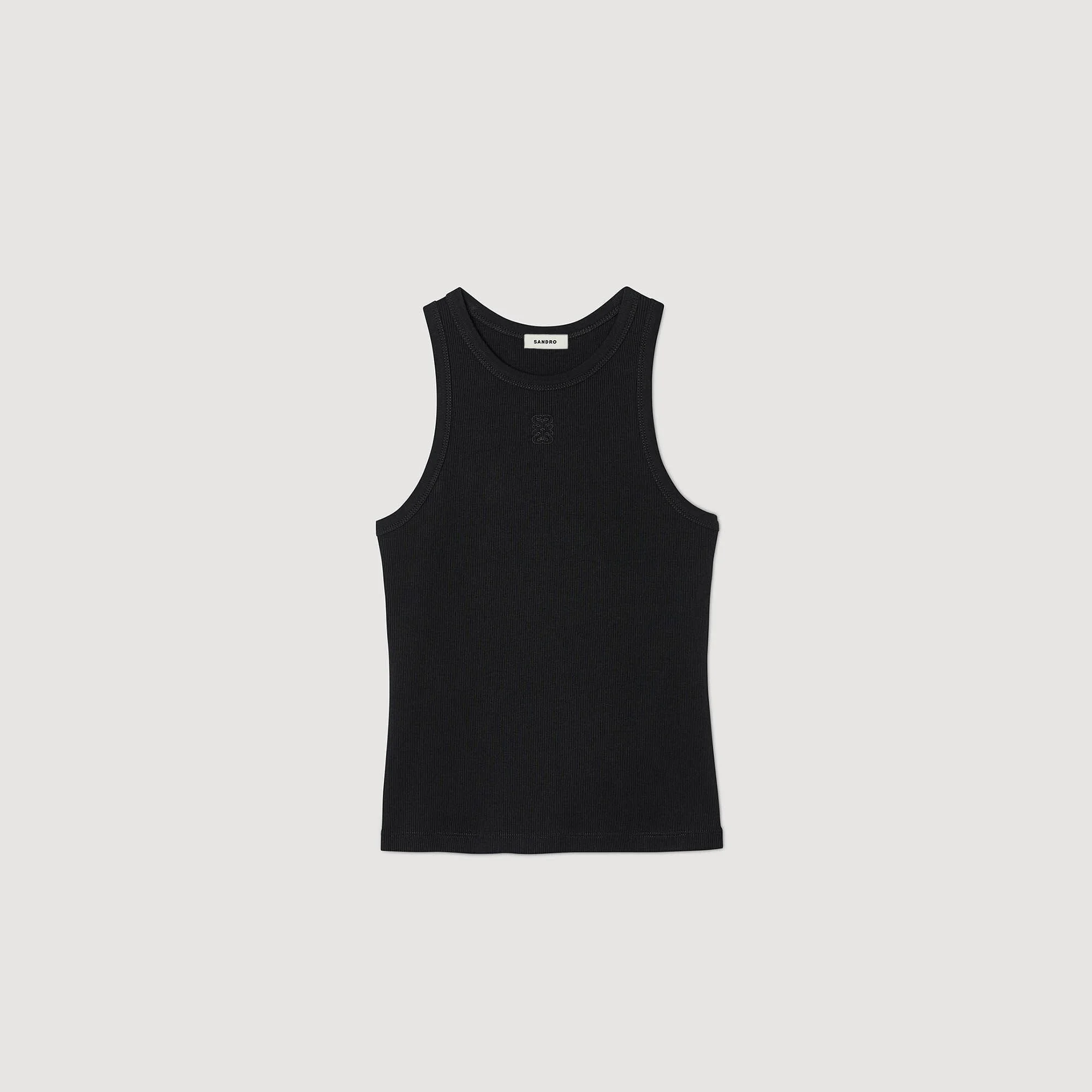Vest top with round neck and American-style armholes, embellished with embroidery on the chest. Sandro Women's vest top American armholes Round neck SANDRO embroidery The model is 177 cm / 5'09 tall and wears a size 1 FR / 8 UK COMPOSITION Main fabric: 100% cotton Embroidery: 100% viscose Rib: 100% cotton Reference: SFPTS01459_20