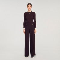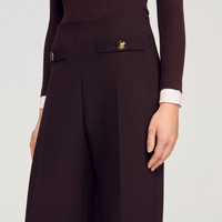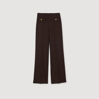 - Sandro Women's flared trousers - Ironed creases down the leg - Piped pockets at the waist - Side zip fastening - Designed for a boxy fit Reference: SFPPA01805_G023 COMPOSITION & CARE Composition - Main material: 54% polyester, 44% virgin wool, 2% elastane - Belt lining: 100% cotton Care advice - Regular cycle 30° - Do not bleach - Do not tumble dry - Iron at a maximum temperature of 110°C without steam - F/ - Professional dry clean, with hydrocarbon solvent, gentle treatment