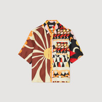 Sandro is renewing its collaboration with French artist Louis Barthélémy to create a captivating collection inspired by travel and celebrating African craftsmanship. Floaty short-sleeved shirt with classic collar, two prints and chest pocket. Sandro Women's floaty patterned shirt Motifs designed by Louis Barthélémy Classic collar Short sleeves Button fastening The model is 180 cm / 5'11 tall and wears a size 1 FR / 4 US COMPOSITION Main fabric: 100% silk Reference: SFPCM01125_A410