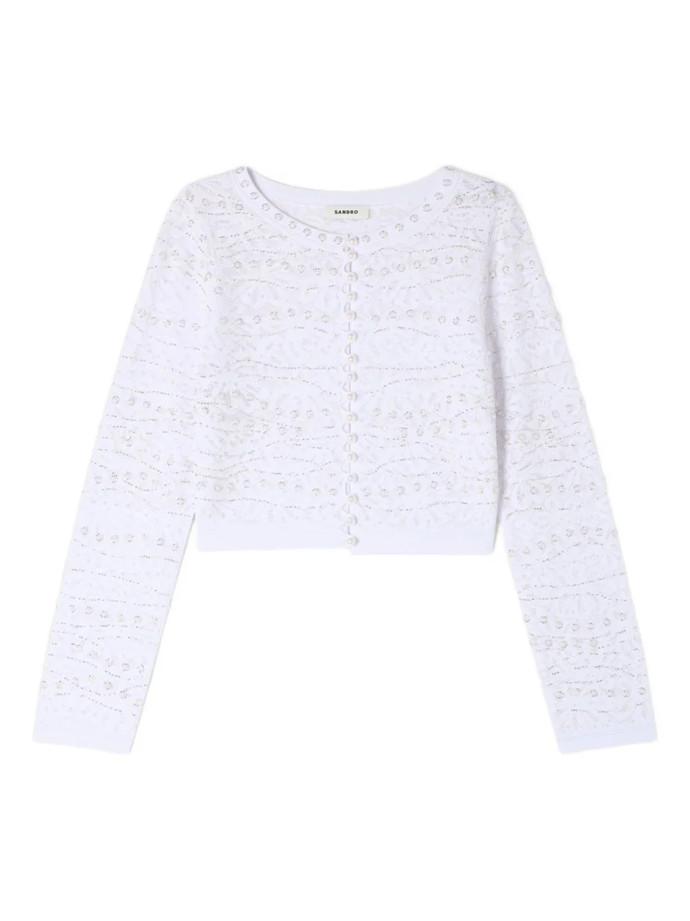 floral-embellished knit cardigan Highlights - White - Floral-pattern embroidery - Embellishments - Textured knit - Button fastening Imported Composition Viscose 55%, Polyamide 41%, Polyester 4% Washing instructions Read Manufacturer Guidelines
