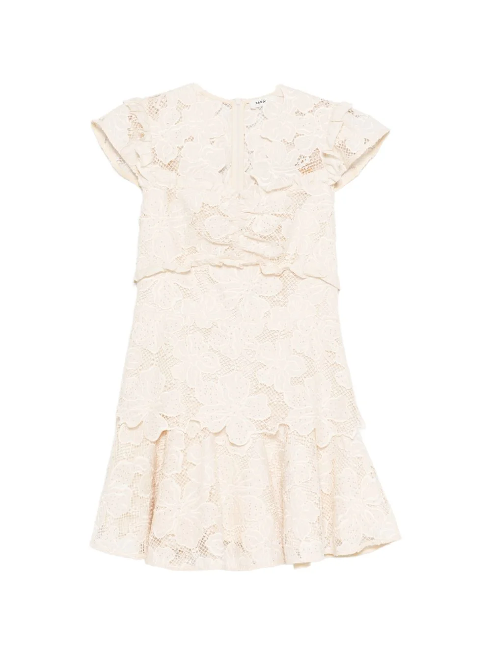floral-embroidered lacedetail mini dress Highlights - Beige - Floral lace - Short sleeves - Layered design - Round neck - Zip fastening Imported Composition Outer: Polyester 66%, Cotton 32%, Polyamide 2% Lining: Viscose 54%, Linen/Flax 32%, Polyamide 14% Washing instructions Dry Clean Only