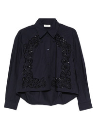 floral embroidered shirt Highlights - Navy blue - Floral embroidery - Asymmetric hem - Long sleeves - Buttoned cuffs - Button fastening Imported Composition Outer: Cotton 100% Lining: Viscose 50%, Cotton 50% Washing instructions Read Manufacturer Guidelines