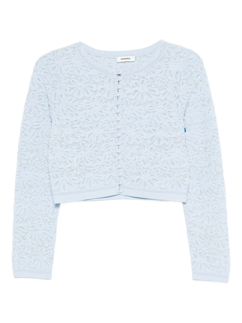floral-pattern cardigan Highlights - Sky blue - Textured knit - Beaded embellishment - Floral motif - Button fastening - Long sleeves Imported Composition Viscose 63%, Recycled Nylon 37% Washing instructions Read Manufacturer Guidelines