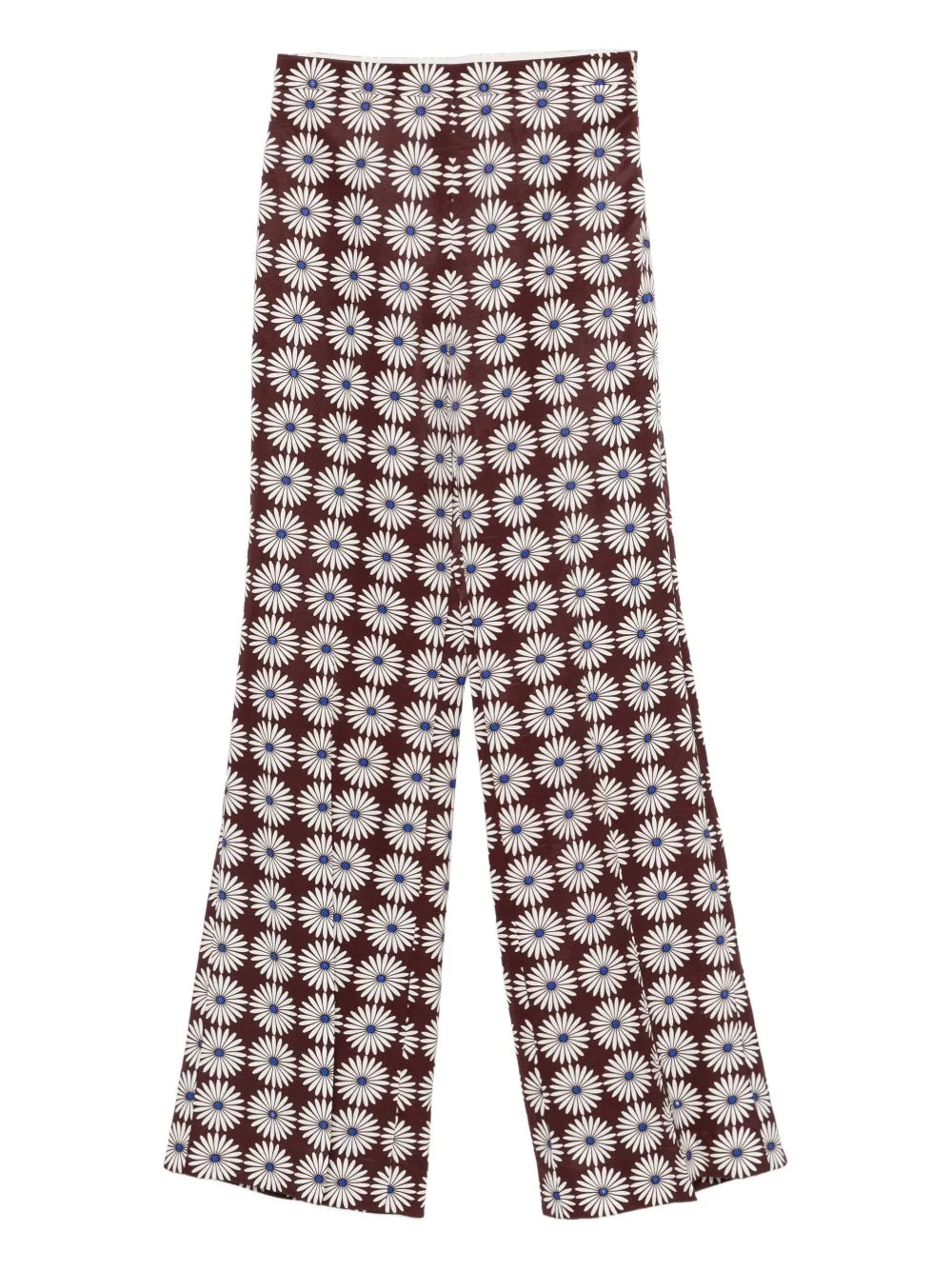 floral-print palazzo pants Highlights - Brown - Blue accents - Floral print - Zip fastening - Long cut - Crease detail Imported Composition Viscose 82%, Linen/Flax 18% Washing instructions Dry Clean Only