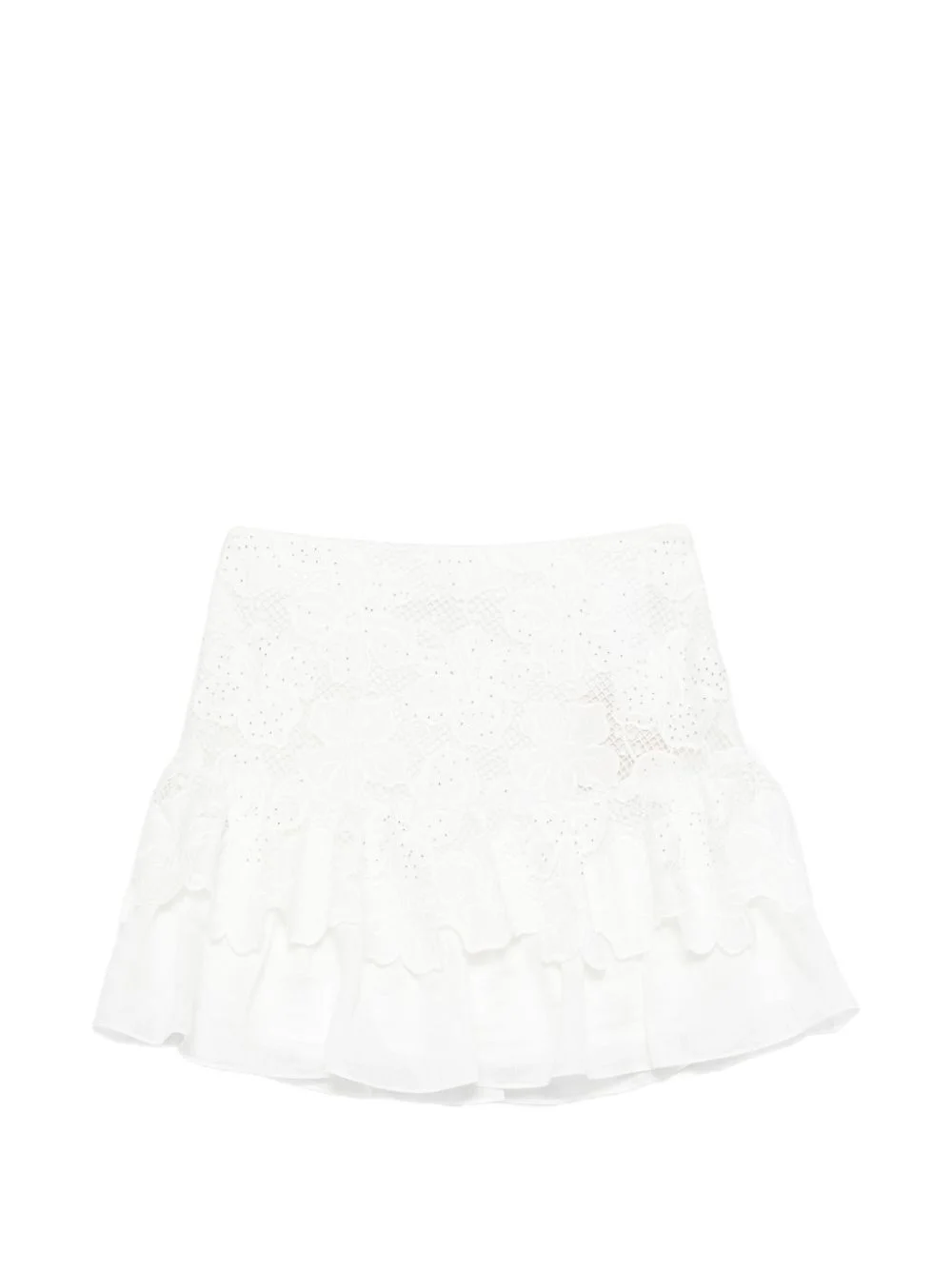 floral ruffled mini skirt Highlights - White - Ruffled hem - A-line Imported Composition Polyester 68%, Cotton 31%, Polyamide 1% Washing instructions Dry Clean Only