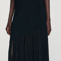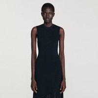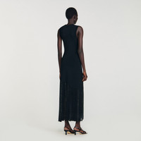 Sleeveless knit maxi dress adorned with wide tone-on-tone rhinestone fringes at the bottom. - Sandro Women's knit dress - Round neck - Sleeveless - Rhinestone fringes - Designed for a slim fit Reference: SFPRO04481_20 COMPOSITION & CARE Composition - Main fabric: 76% viscose, 21% polyamide, 3% elastane - Fringing: 100% viscose Care advice - Hand wash - Do not bleach - Do not tumble dry - Iron at a maximum temperature of 110°C without steam - F - Professional dry clean, with hydrocarbon solvent, normal treatment