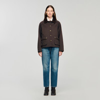Reference: SFPOU00750_G023 COMPOSITION & CARE Composition - Main material: 100% cotton - Lining: 100% polyester - Collar: lambskin leather - Padding: 100% polyester - Bias binding: lambskin leather Care advice - Do not wash - Do not bleach - Do not tumble dry - Do not iron - F/ - Professional dry clean, with hydrocarbon solvent, gentle treatment