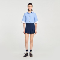 High-waisted tailored shorts with pleats, featuring a belt with topstitched loops and a press-stud fastening. - Sandro Women's pleated tailored shorts - Pressed and topstitched pleats - High waist - Belt loops - Zip fastening with press-stud - Designed for a flared fit Reference: SFPSH00495_44 COMPOSITION & CARE Composition - Main material: 91% polyester, 9% elastane Care advice - Do not wash - Do not bleach - Do not tumble dry - Iron at a maximum temperature of 110°C without steam - F/ - Professional dry clean, with hydrocarbon solvent, gentle treatment