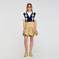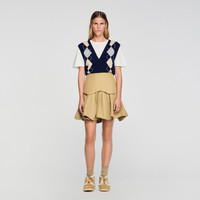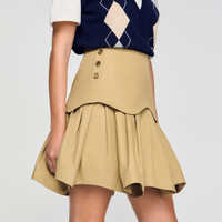 Mini flared skirt with decorative press studs on the sides and a voluminous pleated hem. - Sandro Women's mini flared pleated skirt - High waist - Decorative press studs - Wavy basque - Voluminous pleats - Designed for a flared fit Reference: SFPJU01495_16 COMPOSITION & CARE Composition - Main material: 100% cotton - Lining: 100% cotton Care advice - Regular cycle 30° - Do not bleach - Do not tumble dry - Iron at a maximum temperature of 150°C - F/ - Professional dry clean, with hydrocarbon solvent, gentle treatment